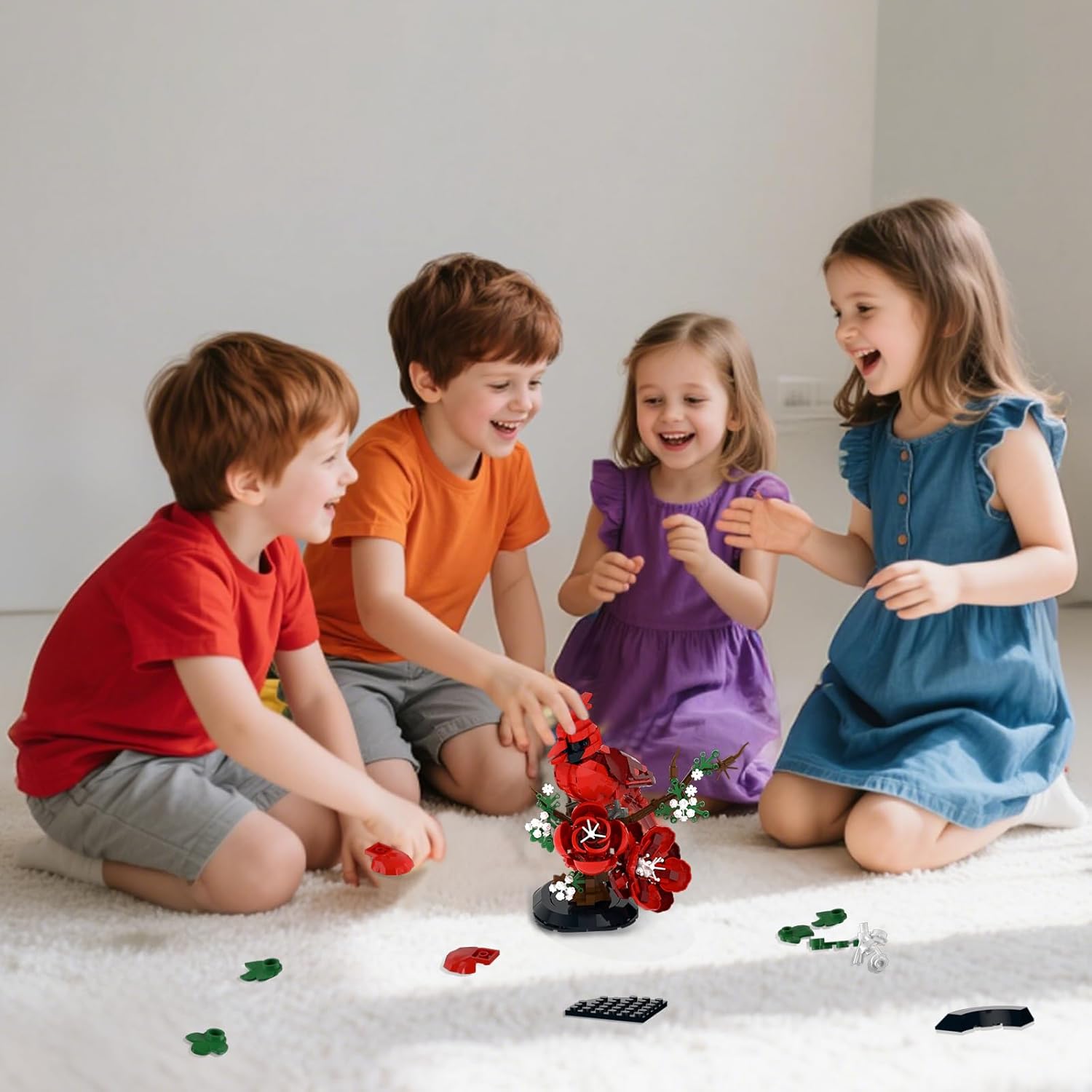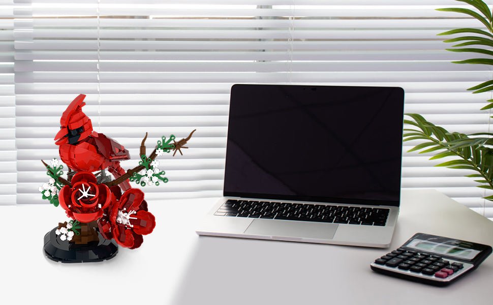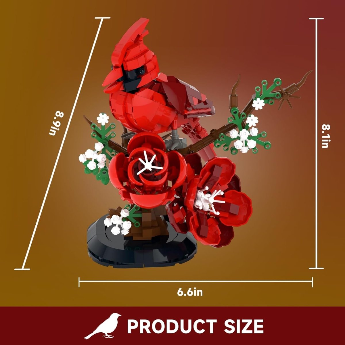DIY Bird Model Kit for Adults, Northern Cardinal Building Blocks - 526PCS Creative Construction Set with Flowers Christmas Gift for Kids & Adults
